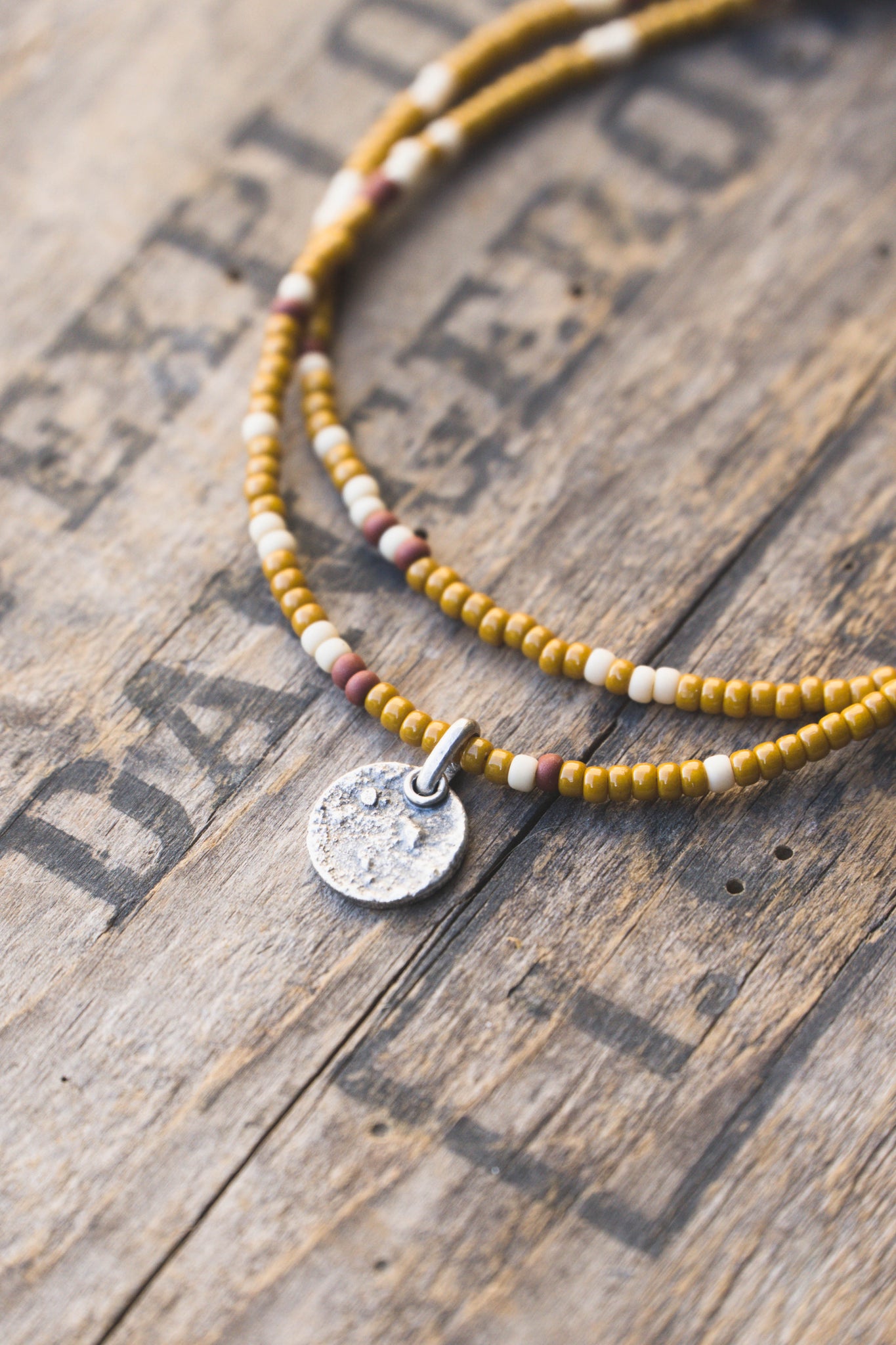 Japanese glass beads are strung on strong wire cord to ensure a long life with all sterling silver elements to finish this strand. The charm can be removed so the bead strand can be worn alone, or alternatively, string the charm on any standard chain for ultimate versatility. Strand measures 20" in length.