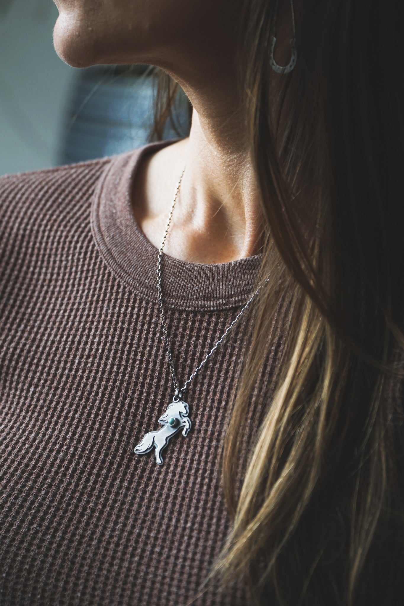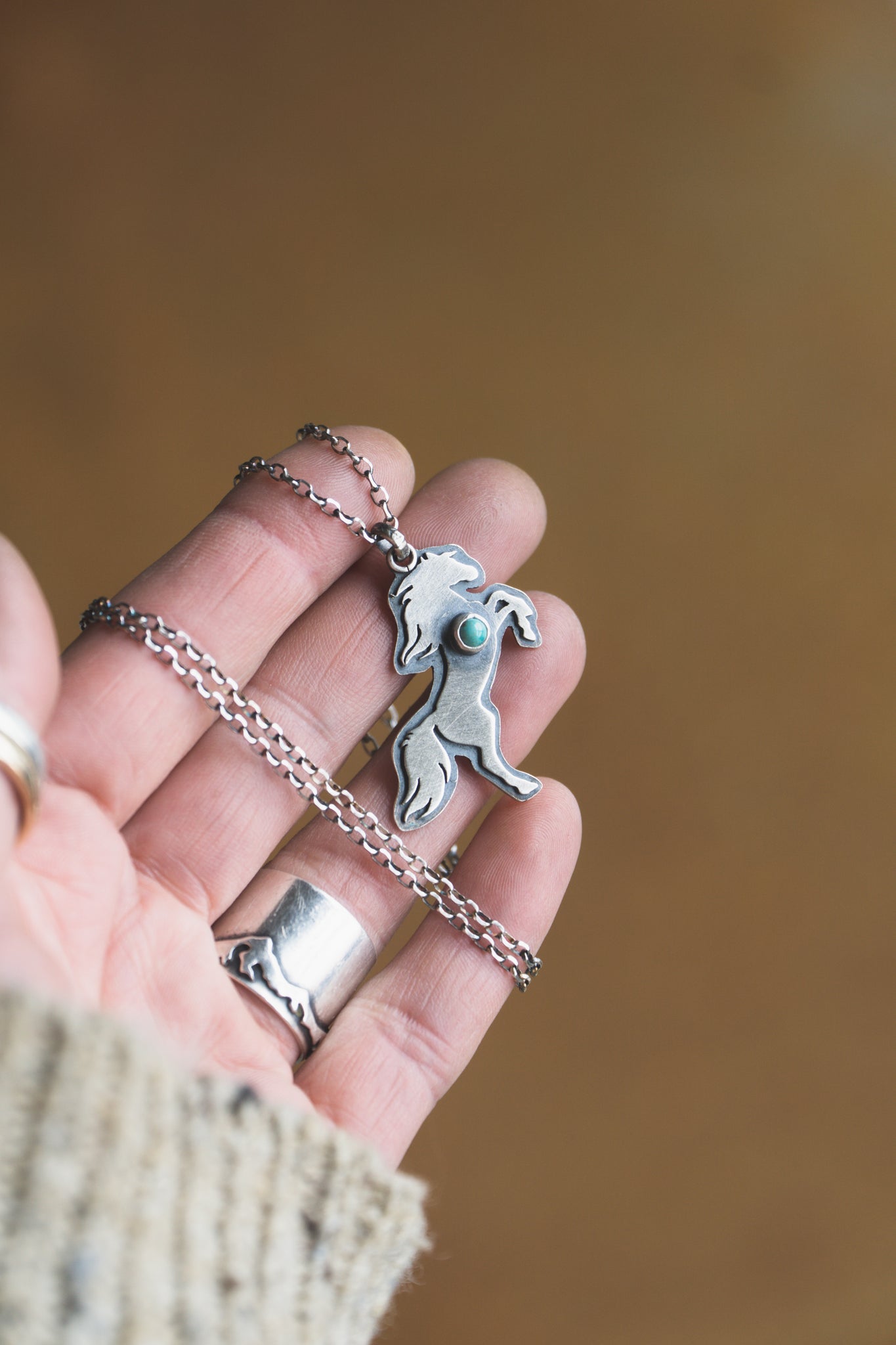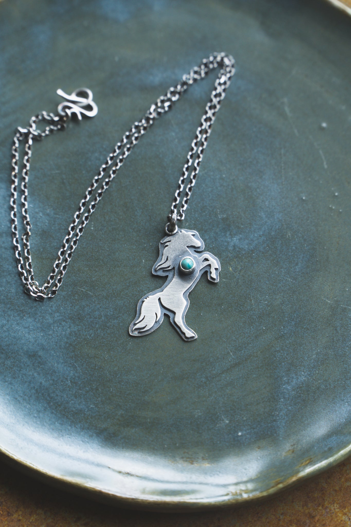 Inspired by the Lunar year of the Fire Horse. A single Sonoran stone set on layered sterling silver strung on a simple 18 inch rolo chain. This necklace was finished with my handmade sterling silver S hook and clasp.