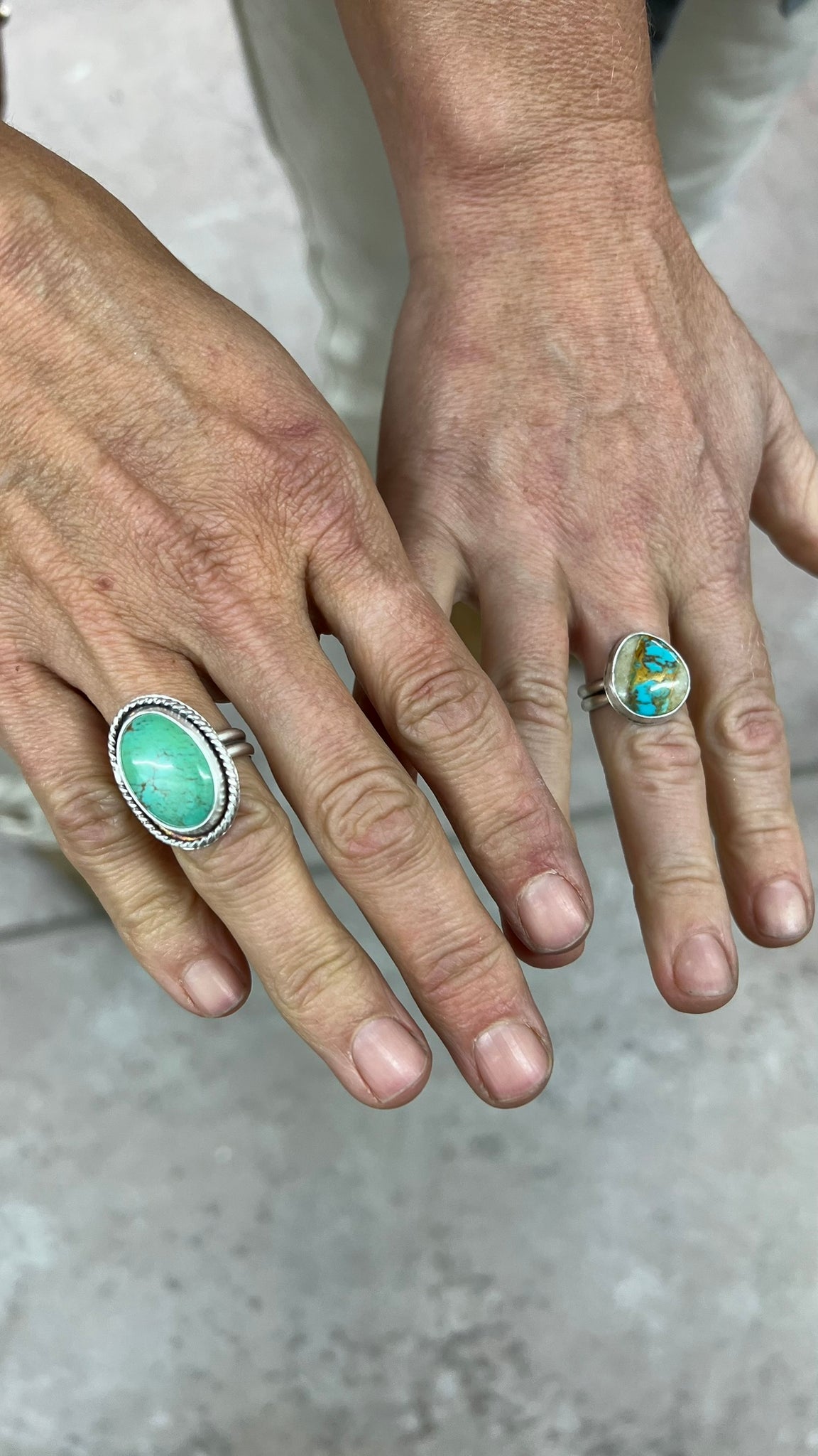 Join me for a single-day, metalsmithing workshop at our beautiful new studio in downtown Bingen! This hands-on workshop is perfect for beginner to intermediate students 18+ who are curious about the world of metalsmithing. You'll walk away from this workshop with a one of a kind statement ring crafted from high quality turquoise or jasper set in sterling silver.
