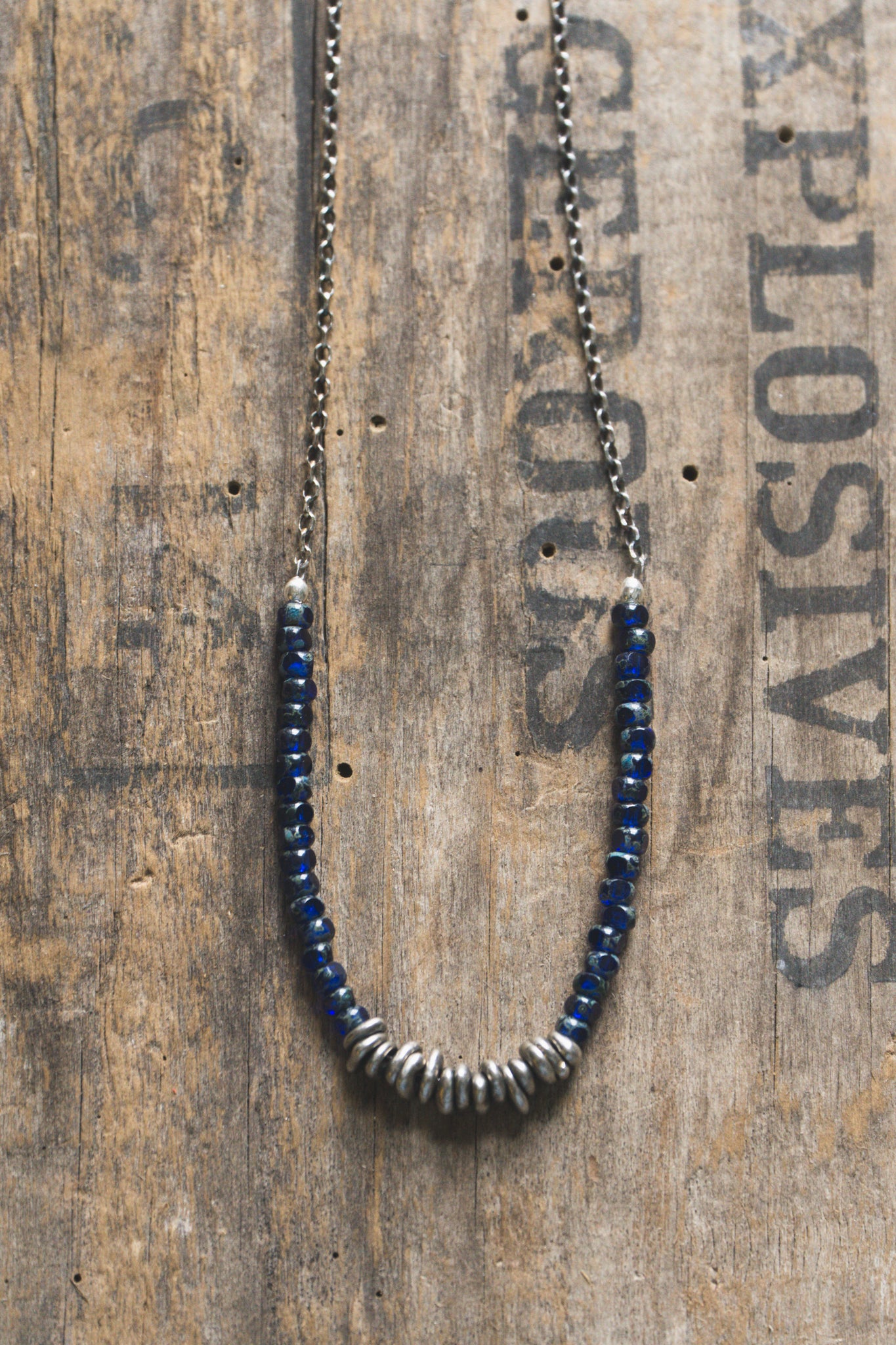 This partial bead strand features deep cobalt blue colored glass beads paired with handcrafted sterling silver beads. Strung on lightweight but strong rolo chains and finished with my handmade S hook and closures. Measures 20 inches in length.